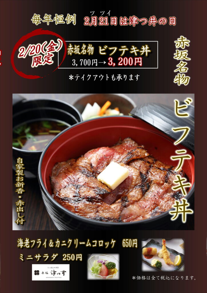 今年の【津つ井の日】限定メニューは2/20金です。