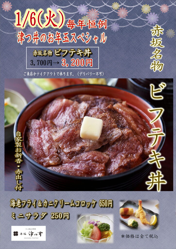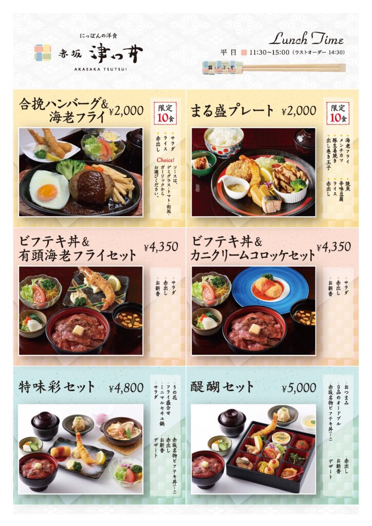 →赤坂名物ビフテキ丼 orハヤシライスor 白オムライス